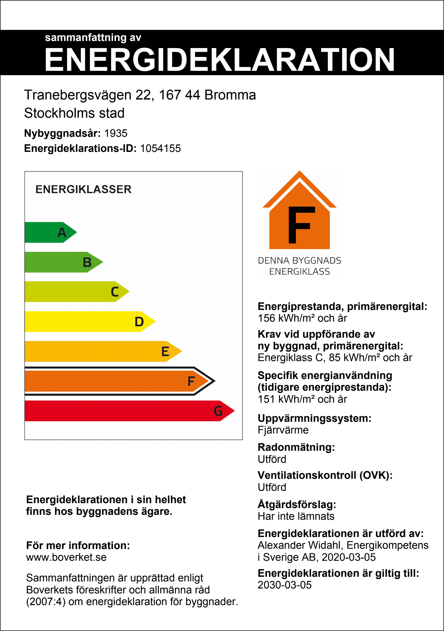 Energiprestanda: 156 kWh/m² (primärenergital) och år